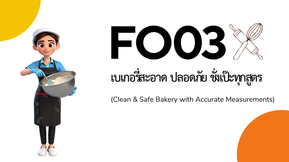 หลักสูตรนี้จัดทำขึ้นเพื่อให้การทำเบเกอรี่เป็นไปอย่างสะอาด ปลอดภัย และชั่งตวงวัดส่วนผสมได้อย่างถูกต้อง